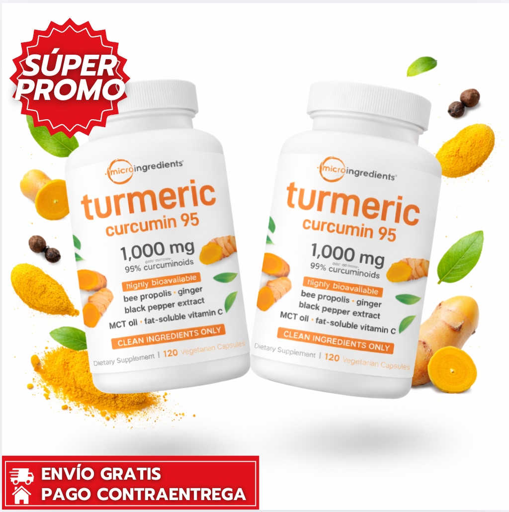 Turmeric Curcumin 95 ofrece una solución natural y altamente concentrada que ayuda a aliviar molestias articulares, apoyar la respuesta antiinflamatoria del cuerpo y proteger tus células desde el interior.